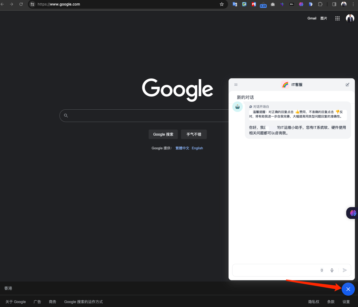 • Chrome打开任意页面均可正常加载DIfy机器人浮动栏,后续如需更换机器人只需要变更ChatBot Url即可